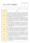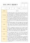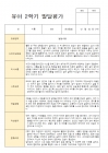 2학기 동안 대부분의 활동에서 차분하고 안정된 태도를 유지하며 참여했고, 사물과 상황을 세심하게 살피는 관찰력이 발달하였다.