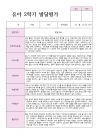 표현 활동이 제시되면 재료의 특성을 충분히 살핀 뒤 계획적으로 시작하고, 미술에서는 색과 선을 반복과 배열로 구성해 정돈된 표현을 만들어가며, 음악활동에서는 소리를 집중해 듣고 리듬에 맞춘 부분 동작으로 반응하고, 또래의 작품을 관찰해 흥미로운 요소를 선택적으로 자신의 표현에 반영하며, 활동 과정에서 몰입 시간이 길게 유지되어 중단 없이 이어지고, 완성된 결과물을 즉시 드러내기보다 스스로 감상하는 시간이 나타나며, 자신의 작품에 대해 차분한 말로 의미와 과정 을 설명하려 하고, 예술경험 전반에서 지속적이고 안정적인 참여 태도가 유지된다.
