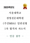 2025학년도 서울대학교 경영전문대학원(주간MBA) 일반전형 1차 합격자 자소서 [인증첨부]