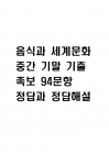 | 음식과 세계문화 중간 기말 기출문제 족보 94문항 정리 (최근5년간 음식과 세계문화 중간고사,기말고사 2회이상 반복기출된 기출문제 정리 및 정답과 문제풀이)